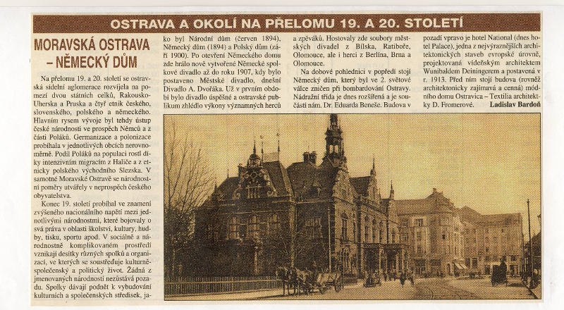 Z kultury jsme toho moc neužili: taneční zábavy byly zakázané, městské divadlo (Stadtheater), na dnešním Smetanovém náměstí hrálo výhradně německy. Dnešní divadlo Jiřího Myrona Národní dům) vysílalo své herce na estrády do různých části Ostravy ( například do Sokolovny u Slezskoostravského kostela), ale to bylo velmi málo.