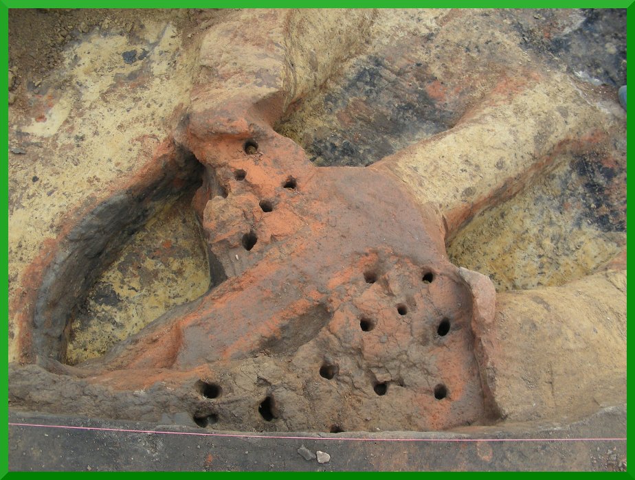 Ve výkopu pro jeden z drénů byla pracovníky Masarykova muzea v Hodoníně identifikována anomálie, projevující se výskytem většího množství mazanice spolu s laténskou keramikou. Po začištění profilu byl zjištěn rošt, který indikoval hrnčířskou pec. Profil byl následně dokumentován v rámci záchranného archeologického výzkumu.