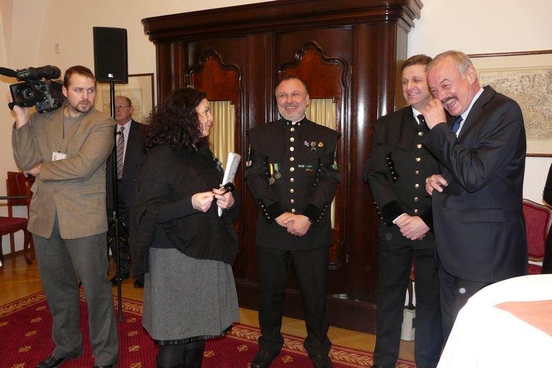 Po skončení oficialit někteří zástupci předávali drobné dárky,připomínající naši činnost a hornické tradice. Také náš předseda předal p.Sobotkovi digitání vizualizaci Dolní oblasti Vítkovic.