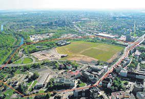 V letech 1999–2005 probíhala na území bývalé Karoliny rozsáhlá a fi nančně velmi nákladná dekontaminace celého území. Metodou termické desorpce se podařilo vyčistit více než 500 tisíc tun zeminy, která byla silně kontaminována toxickými látkami. Záměrem je proměnit oblast Karoliny v integrální součást celoměstského centra tak, aby se tato lokalita organicky propojila s okolní městskou zástavbou.