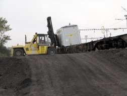 1 320 t denně přepravováno po železnici koncovému odběrateli, společnosti Lafarge Cement, a. s. Přeprava se uskutečňuje ve speciálních kovových kontejnerech společnosti INNOFREIGHT, které jsou na lagunách naplněny palivem GEOBAL 4 a po zvážení a uzavření automobily přepraveny na kolejovou vlečku, kde speciální vysokozdvižný vozík přeloží kontejner na železniční podvalník. Denně takto opouští Ostravu vlak s 66 kontejnery naplněnými cca 20 tunami GEOBALU 4 a směřuje do blízkosti skládky CELIO a. s., u Litvínova. Zde jsou kontejnery opět pomocí speciálního vysokozdvižného vozíku ze železničního podvalníku sundány a palivo GEOBAL 4 vysypáno do nákladních automobilů, které jej následně převezou na skládku nebezpečného odpadu CELIO. Zde je palivo uloženo do zabezpečené kazety o objemu cca 280 000 m3 a bude zde mezideponováno před konečným využitím (spálením) v zařízení společnosti Lafarge Cement, a. s. Konečný odběratel paliva