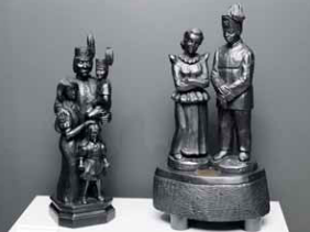 jsou vystaveny řezbářské práce v černém uhlí, jejímiž autory jsou místní neprofesionální umělci spojení s