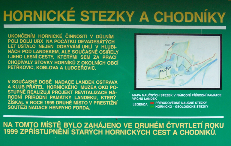 Souběžně s hornickou stezkou probíhala na hřebenní části návrší Landeku přírodovědná naučná stezka, která byla otevřena pro veřejnost v roce 1976. Rekonstruována na počátku 90. let. Stezka sledovala do určité míry turistickou cestu, zeleně značenou.